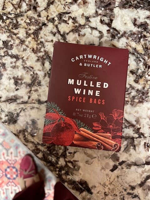 We picked these up at the V&A Museum gift shop, and it’s essentially a tea bag which you simmer on the stove with inexpensive red wine (we get some at Trader Joes) and oranges. It’s not too overpowering but gives the perfect mulled spice flavor, and pairs well with a bit of honey and an orange slice in the mug. This is such a nice treat on a cold winter night.
