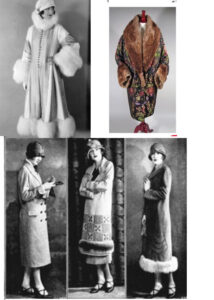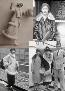 Finally I sewed together the rest of the pieces of the coat, and decided to order a silvery gray faux fur in order to add collar, cuff, and hem fur trim. I thought this gave it a more 1920’s look, as inspired by these photos below.