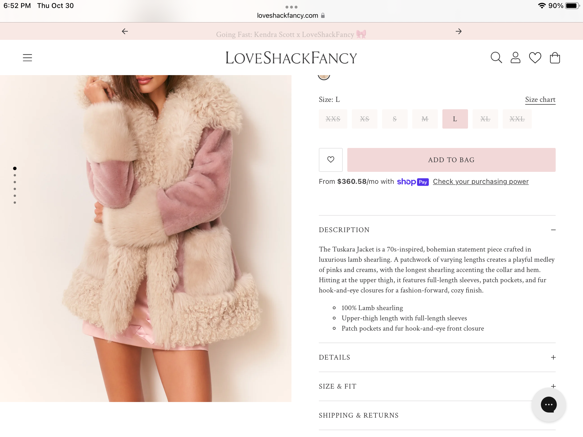 I am a self proclaimed “ambassador of sewing” for many reasons, but one of the top reasons is that if you can sew, you can make yourself just about anything you want, including fashion pieces you would not otherwise pay for. My case in point, is the “Tuskara Oversized Shearling Jacket” by LoveShackFancy, retailing (when it’s not sold out) for $3995! You can see it here.