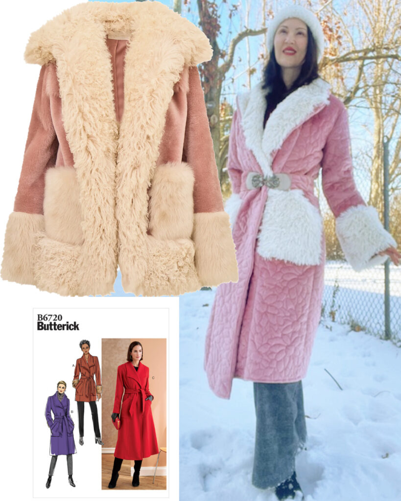 I chose to use a Butterick Sewing pattern, B6720. This pattern presented to me fitted silhouette I prefer to the boxy cut of the original LoveShackFancy coat. For the fur contrast which I feel is the “star of the show”, I ordered this faux shearling from etsy.