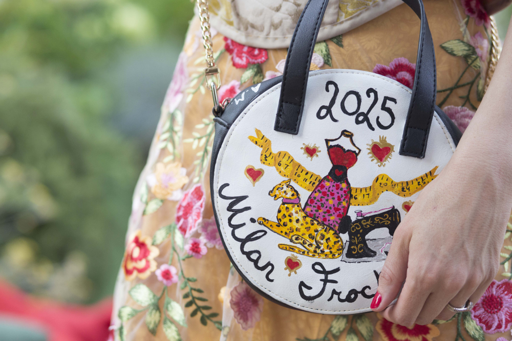 Prior to my previous blog being hacked, I had a thoroughly written report of Milan Frocktails. Come to think of it, there were several posts about it. One post was about the inspiration, another was about the painting of the purse, and another about the head piece creation, jewelry, and ensemble. In the spirit of moving onward despite the “big hack”of my previous blog, I am going to keep this post brief. However my youtube videos should give all the details!