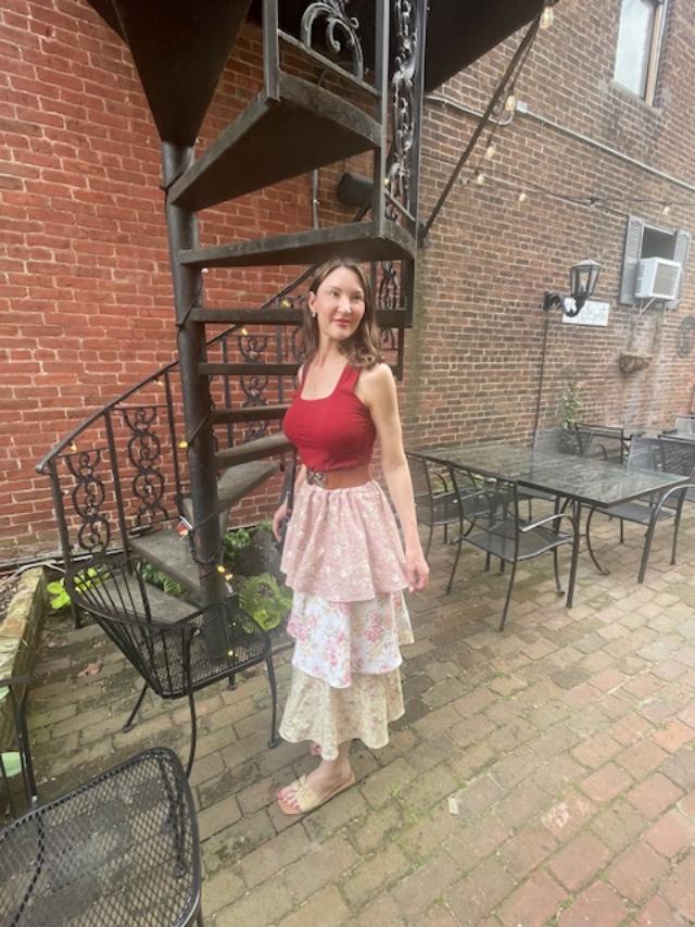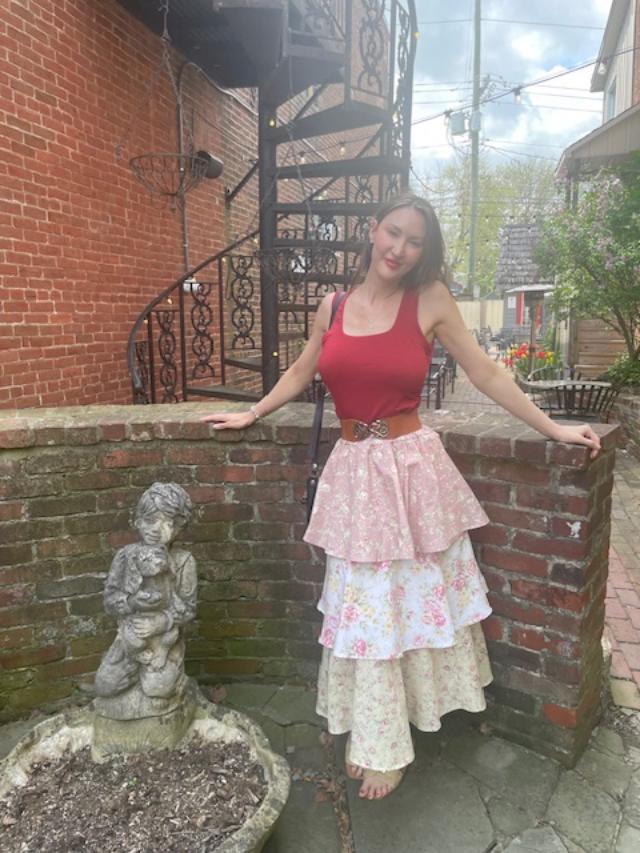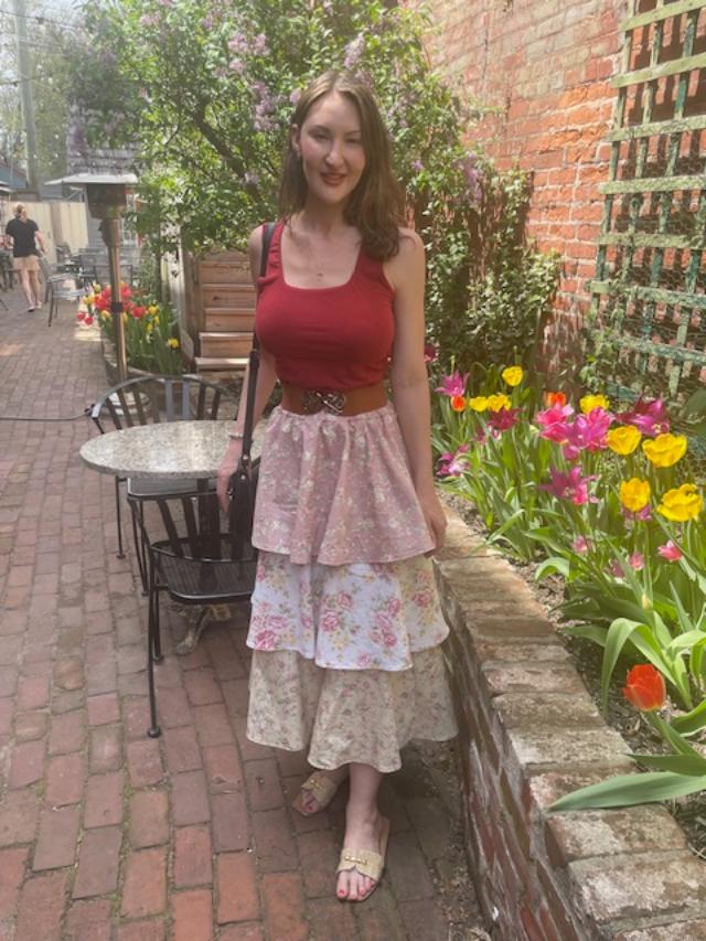 The sewing pattern was quite easy, and it was made in one afternoon. The narrow hems on each tier were a bit tedious, but not difficult.