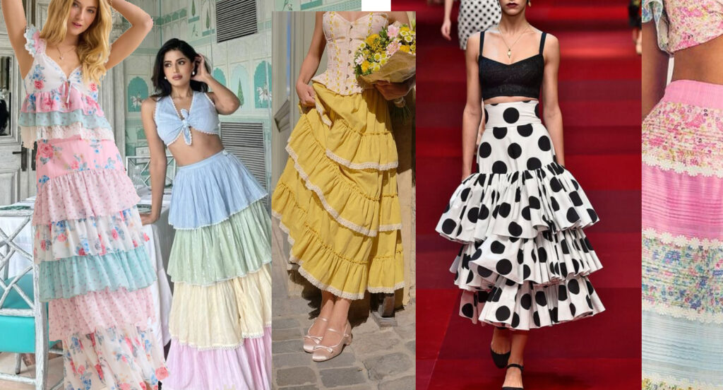 Top tier (including waistband) 45″ of fabric (1.25 yards)