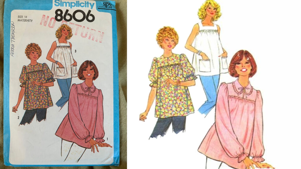With my friend having a baby soon, I scored etsy and ebay to discover a perfect maternity sewing pattern, which would be very on-trend for Spring 2026. Simplicity 8606 was a fabulous find! Although it is from the year 1978, it is still very modern and cute for today’s fashion! The decision to make these maternity looks was decided on prior to attending The Stitch Festival in London, so it was quite enjoyable to hunt for the fabrics to use.