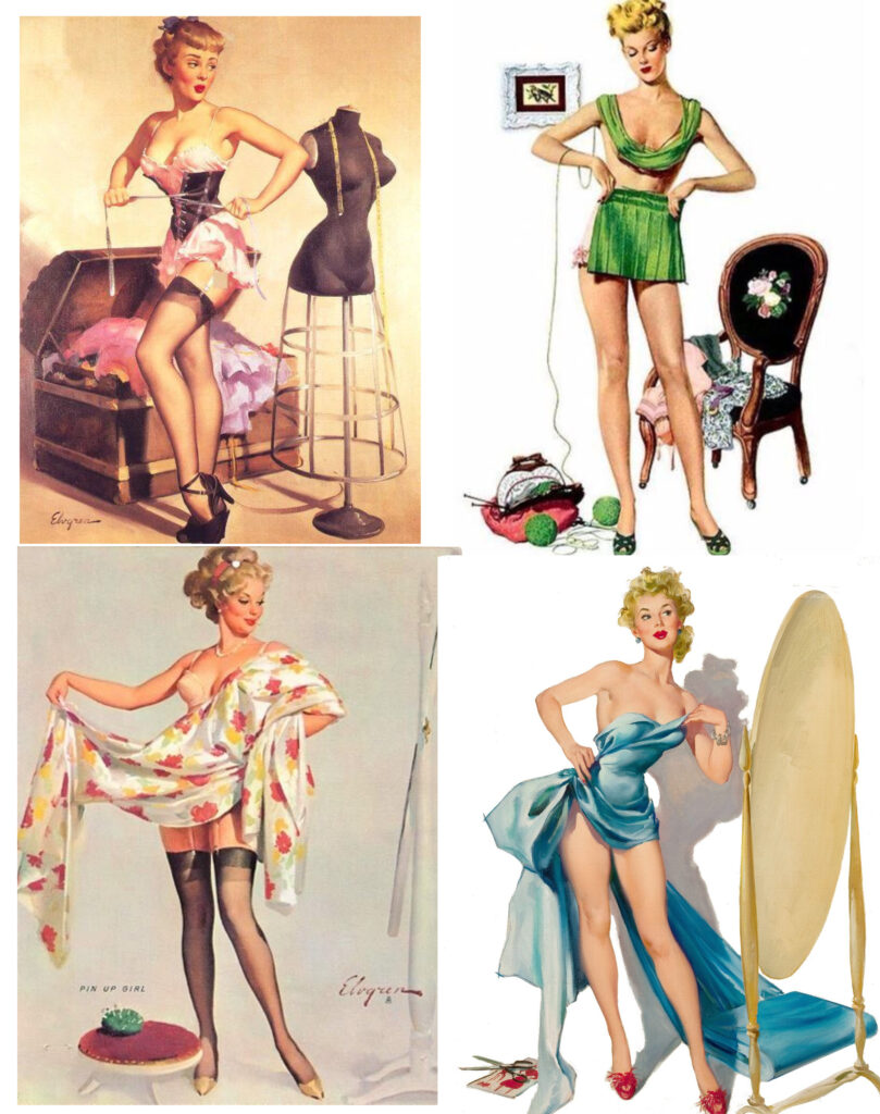 Next, I wanted to pay homage to my love of sewing, particularly vintage sewing. Here are some pin up crafsters which inspired the idea.