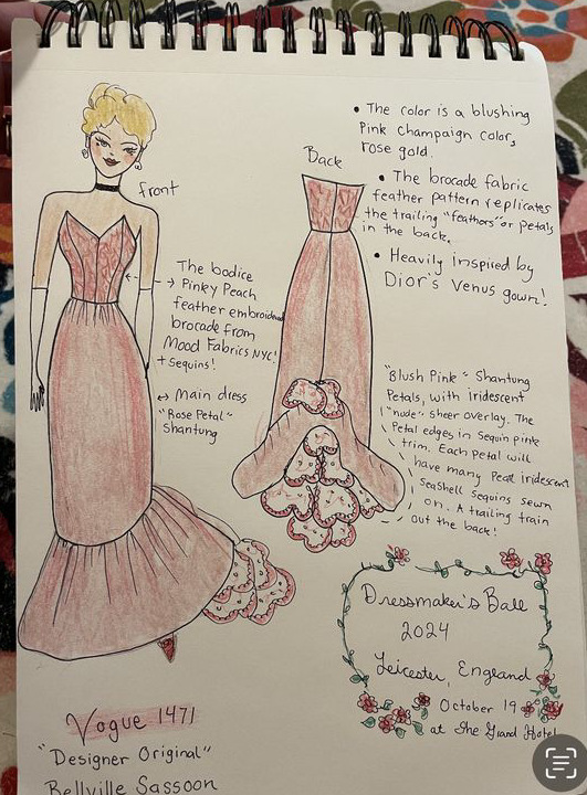 This is an event where the attendees have all sewn their garments for the evening. The room is filled with such glorious creativity and beauty, and the passion of those of us who enjoyed sewing our outfits. It’s a unique event, and as a sewist, it’s an atmosphere that makes one feel very at home and surrounded by like-minded people. In the US, in my local area, I don’t know anyone personally who loves sewing like I do. That’s one reason I feel so connected and joyful attending these kinds of events. It’s just fun to be around others who love sewing as much as I do!